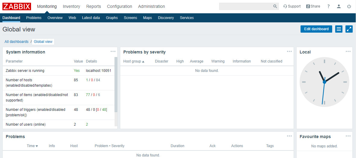 3. Log in to the Zabbix backend successfully.